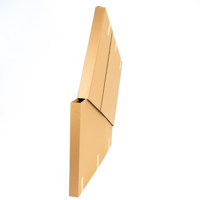 Tout d'abord, j'appose une feuille de papier de soie sur la face peinte, puis du papier bulle tout autour de la toile. Je rajoute une plaque cartonné alvéolée de la taille du cadre en supplément pour protéger la face peinte. Le tout placé dans un colis spécifique pour peinture sur toile.