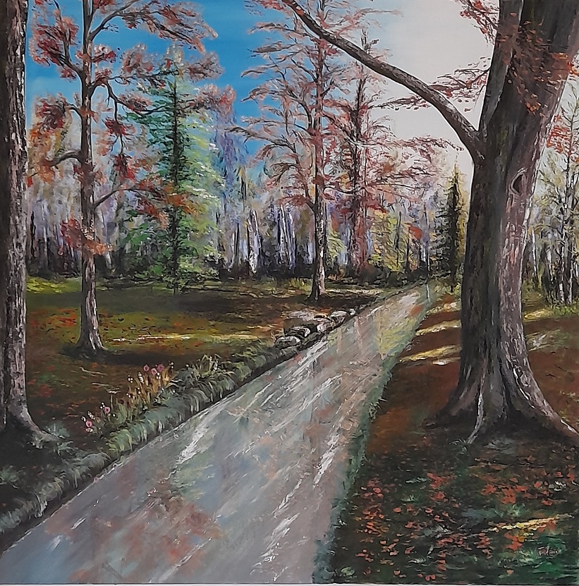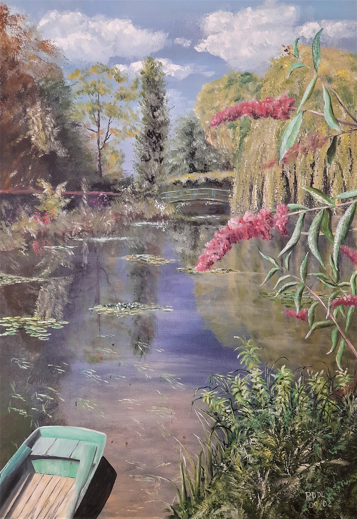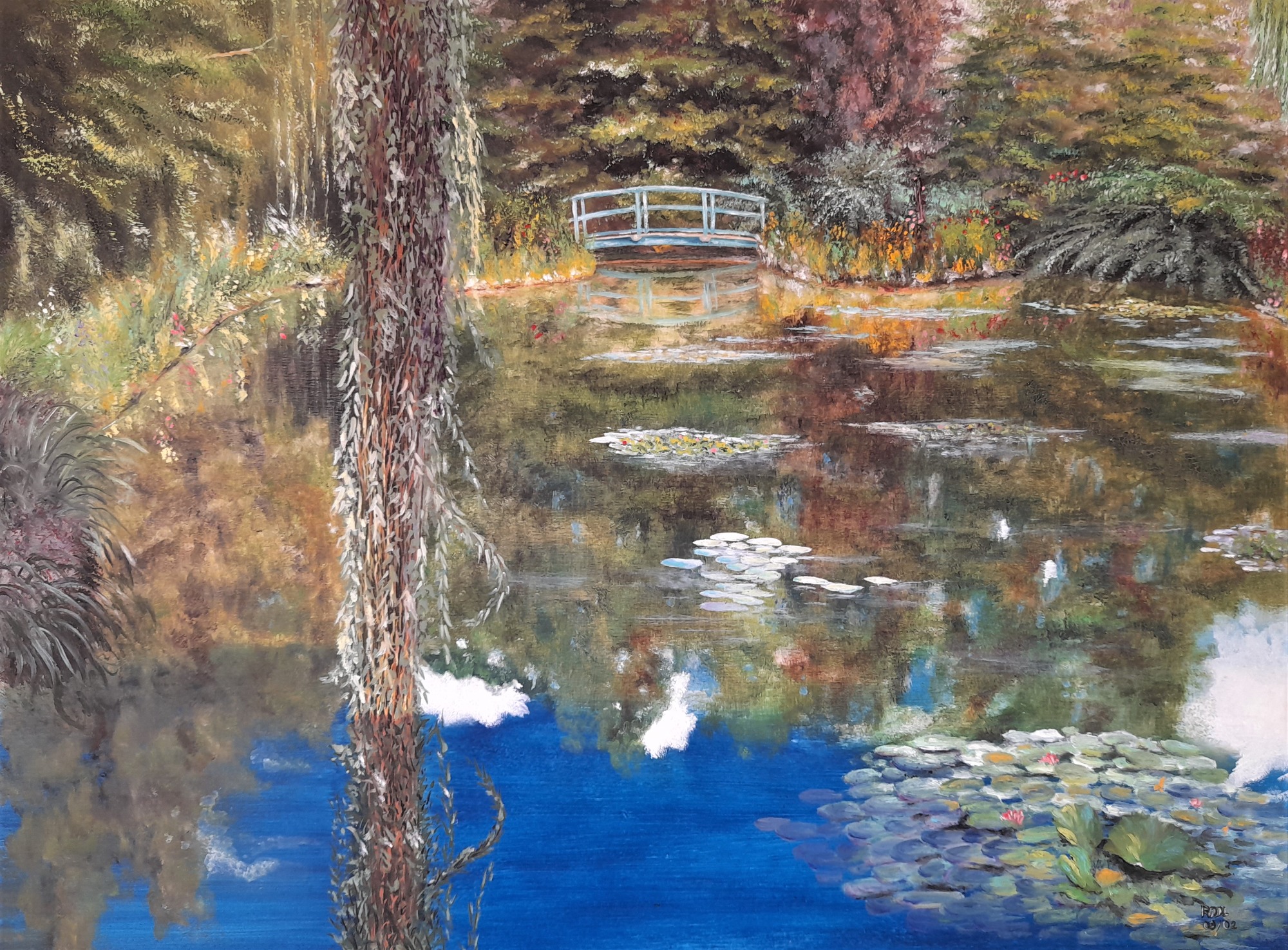 HUILE SUR TOILE 65X50 CM PHOTO PERSONNELLE D'UNE VISITE DES JARDINS DE L'IMPRESSIONNISTE CLAUDE MONET -